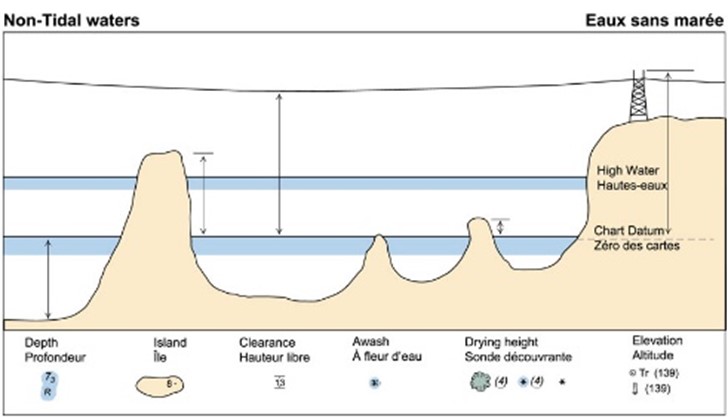 We include hydrographs on charts for tidal and non-tidal waters. Hydrographs indicate the: