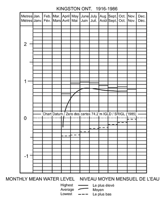 - amount of water to expect above chart datum during any month of the year